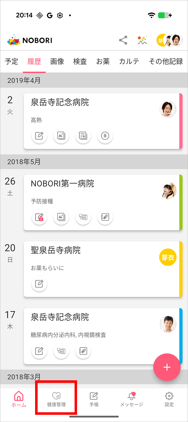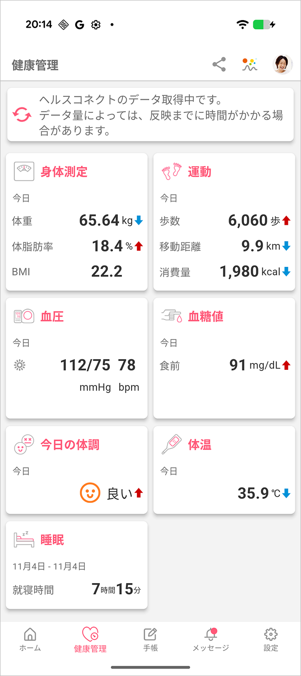 1. 「健康管理」タブをタップし、ヘルスコネクトとの連携設定へ進む