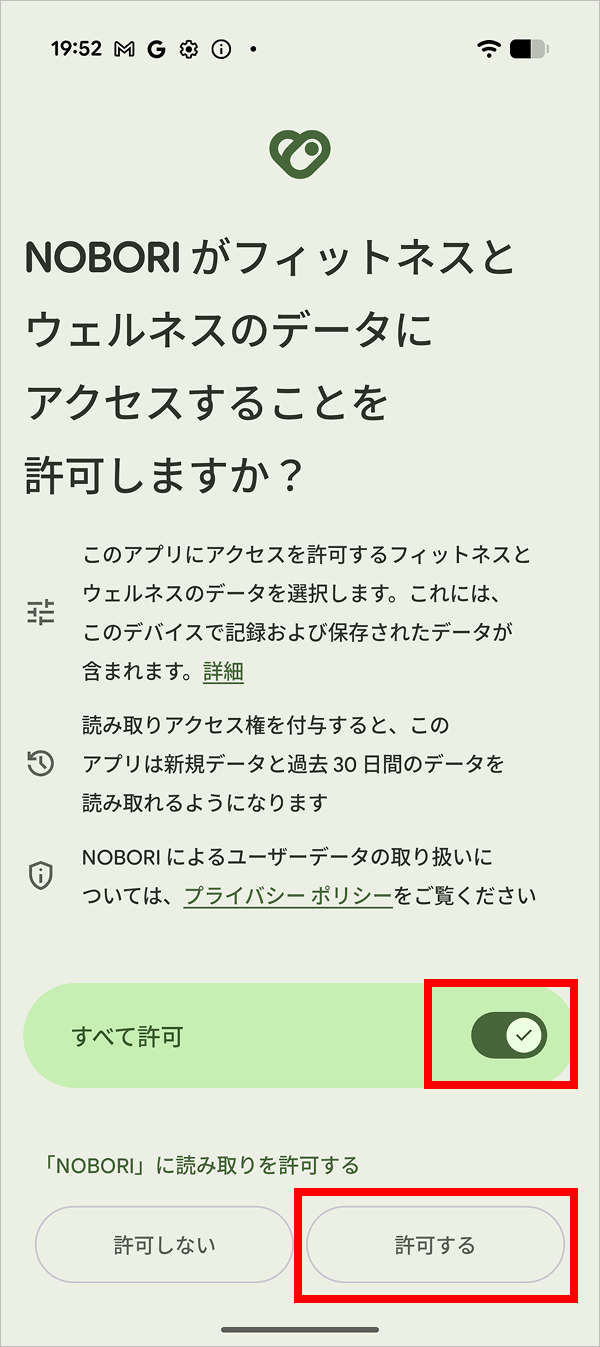 引き続きGoogle FitからのデータをNOBORIに連携するため、未連携の場合はこちらの手順から連携をお願いいたします。